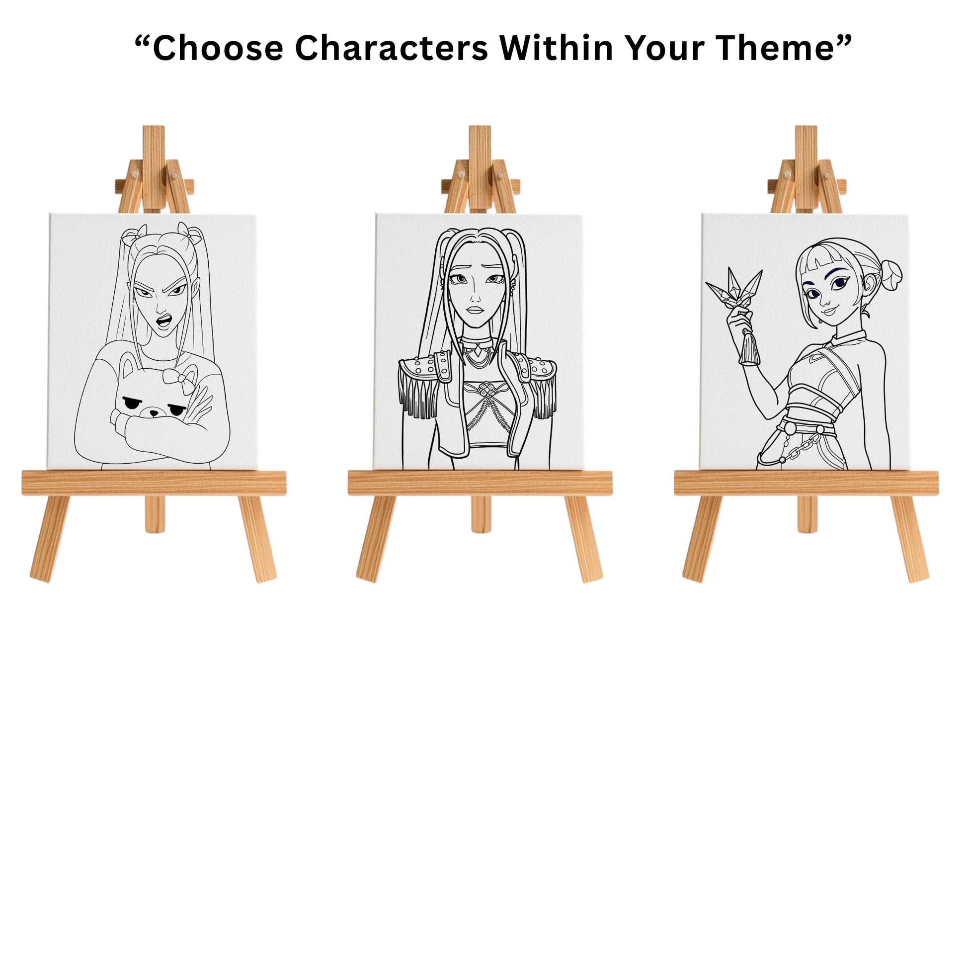 Each canvas is fully customized just for you. You can upload any photo of your child, choose a theme character, or select multiple characters within one theme (example: all princesses). Any image can be transformed into a paint-ready canvas.
